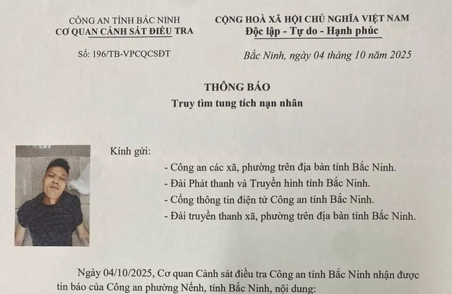 – Ngày 4/10, Cơ quan Cảnh sát điều tra Công an tỉnh Bắc Ninh phát thông báo truy tìm tung tích nam thanh niên đột ngột tử Read More…