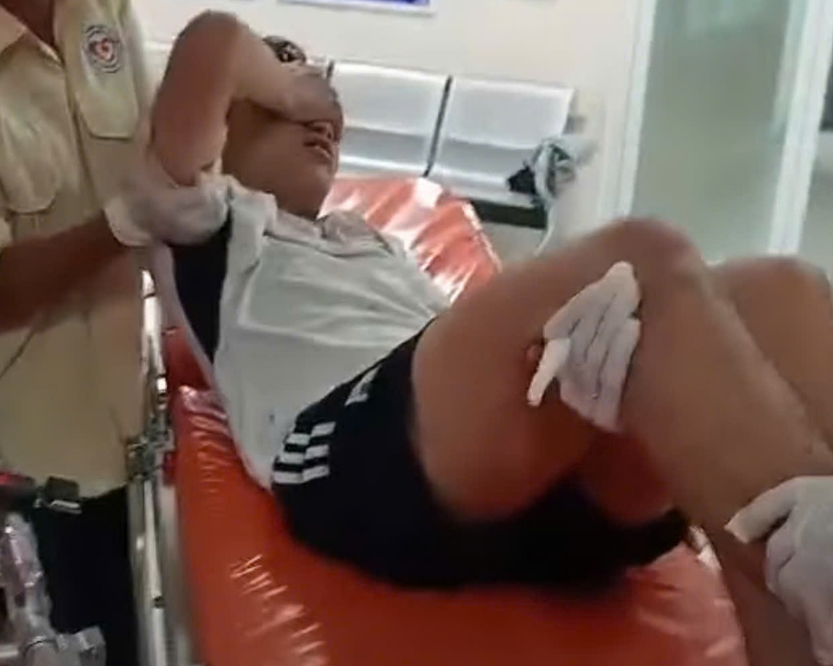 Hình ảnh nam sinh thời điểm được đưa vào bệnh viện Bà Rịa. Ảnh cắt từ clip
