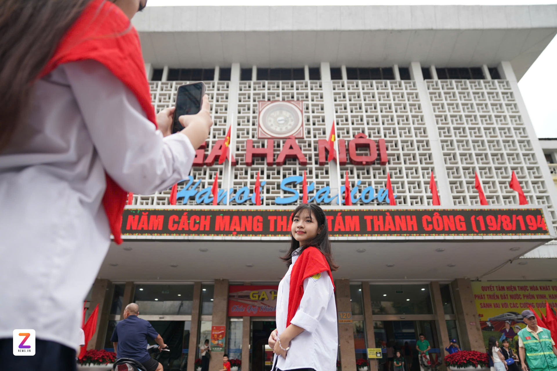 Du khách check-in ga Hà Nội trong buổi sơ duyệt cấp Nhà nước lễ diễu binh, diễu hành A80 ngày 27/8. Ảnh: Linh Huỳnh.